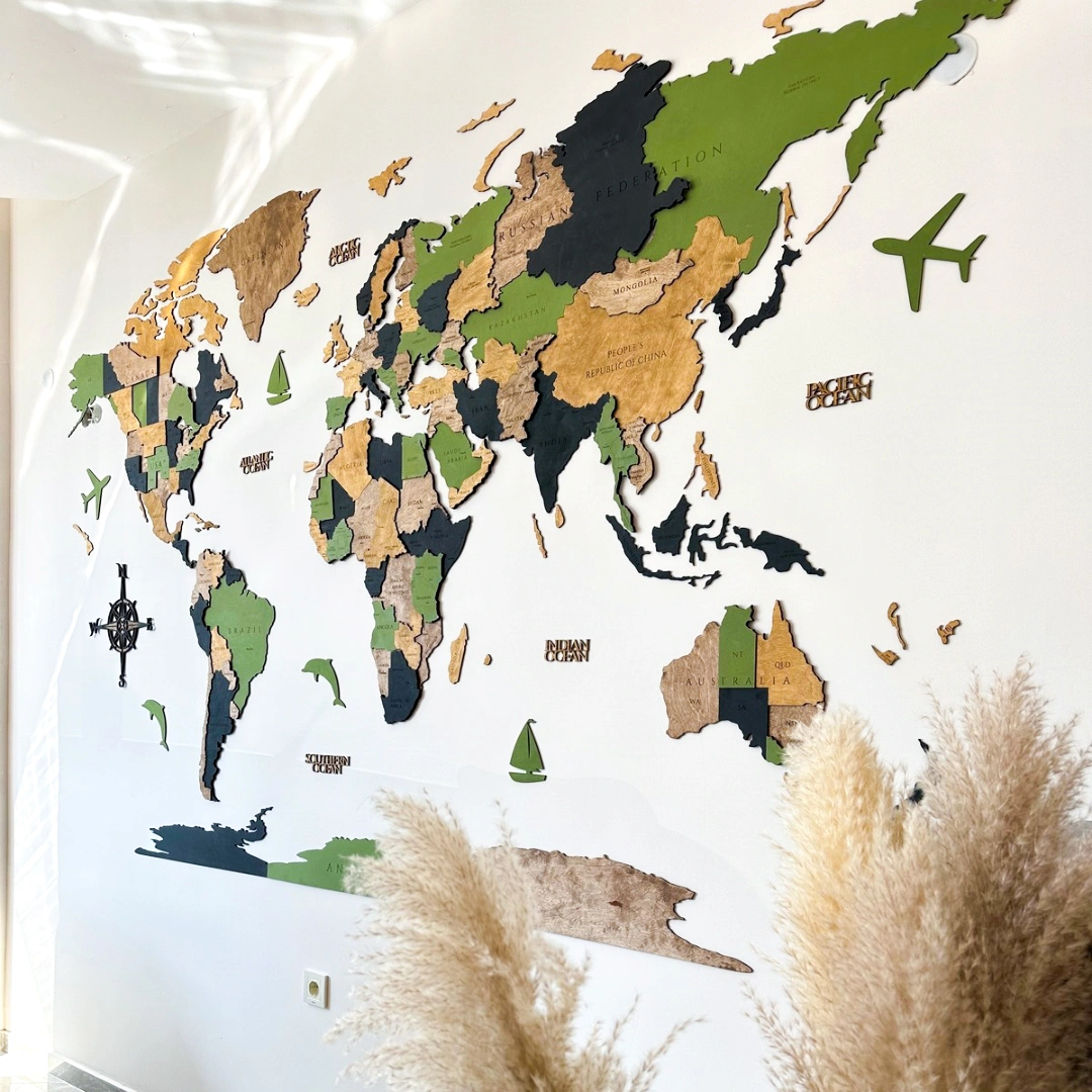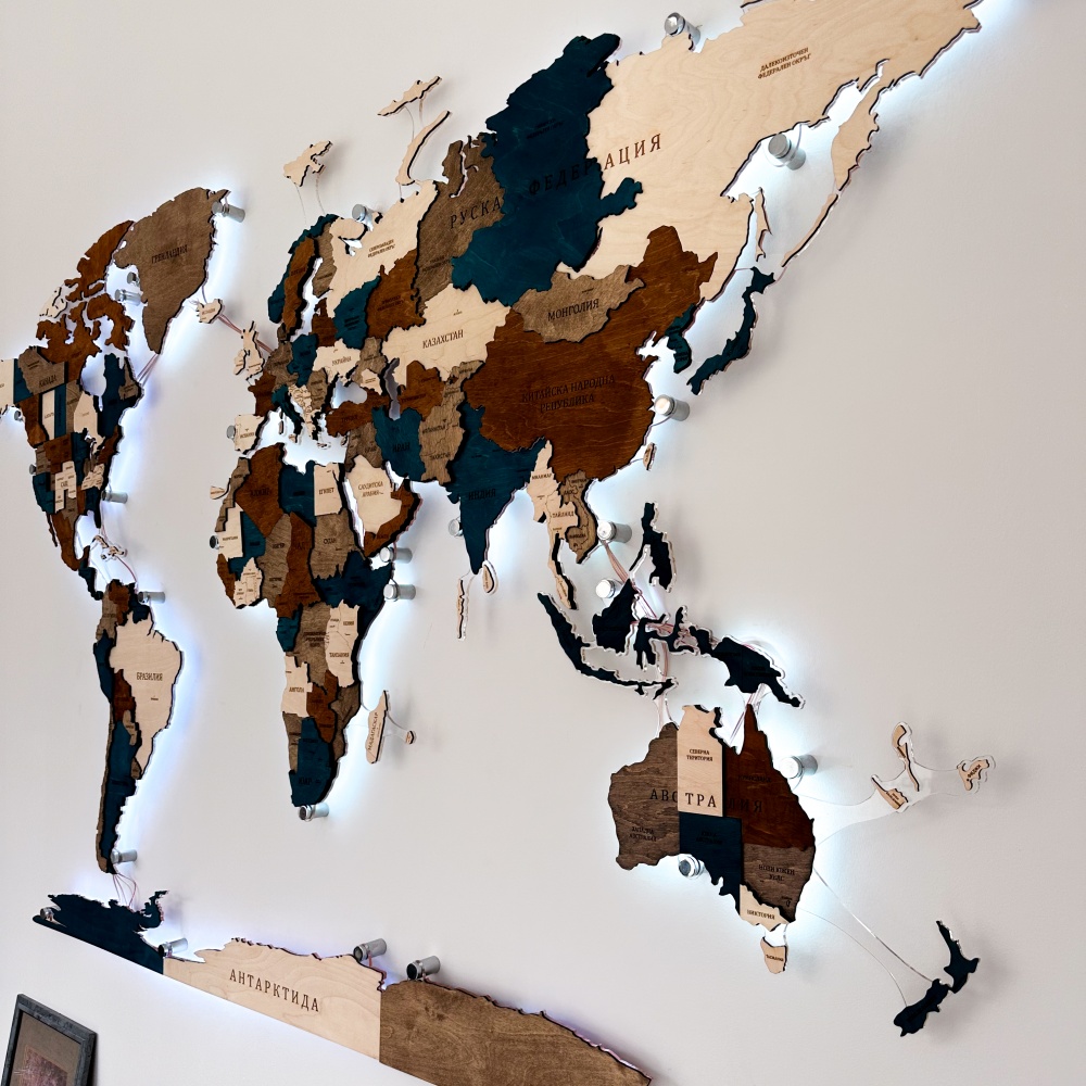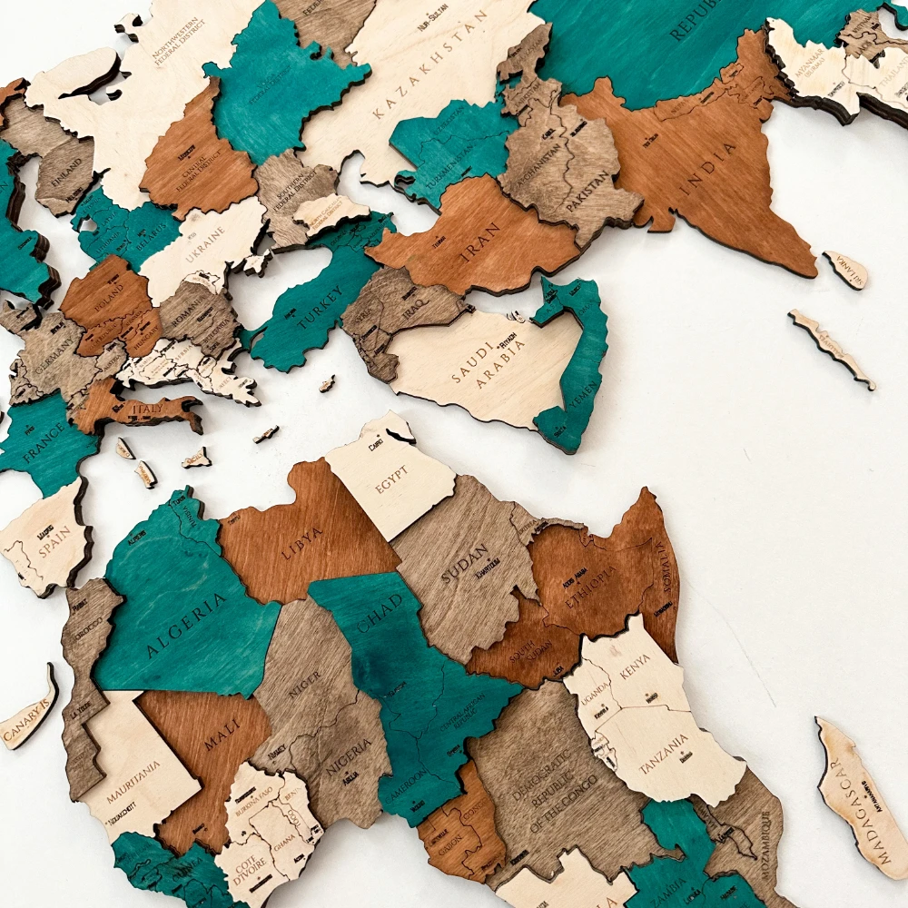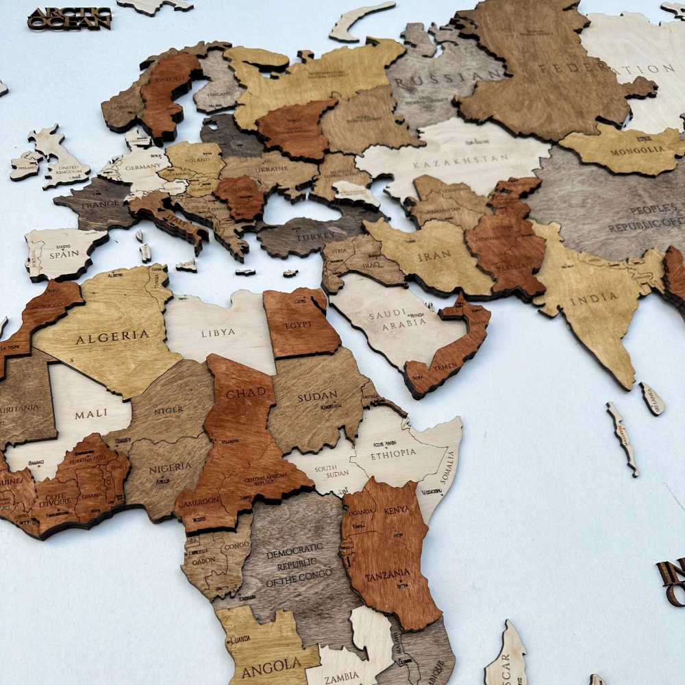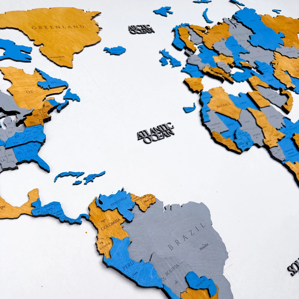 3D ξύλινος χάρτης του κόσμου - μοναδική διακόσμηση για το σπίτι ή το γραφείο σας