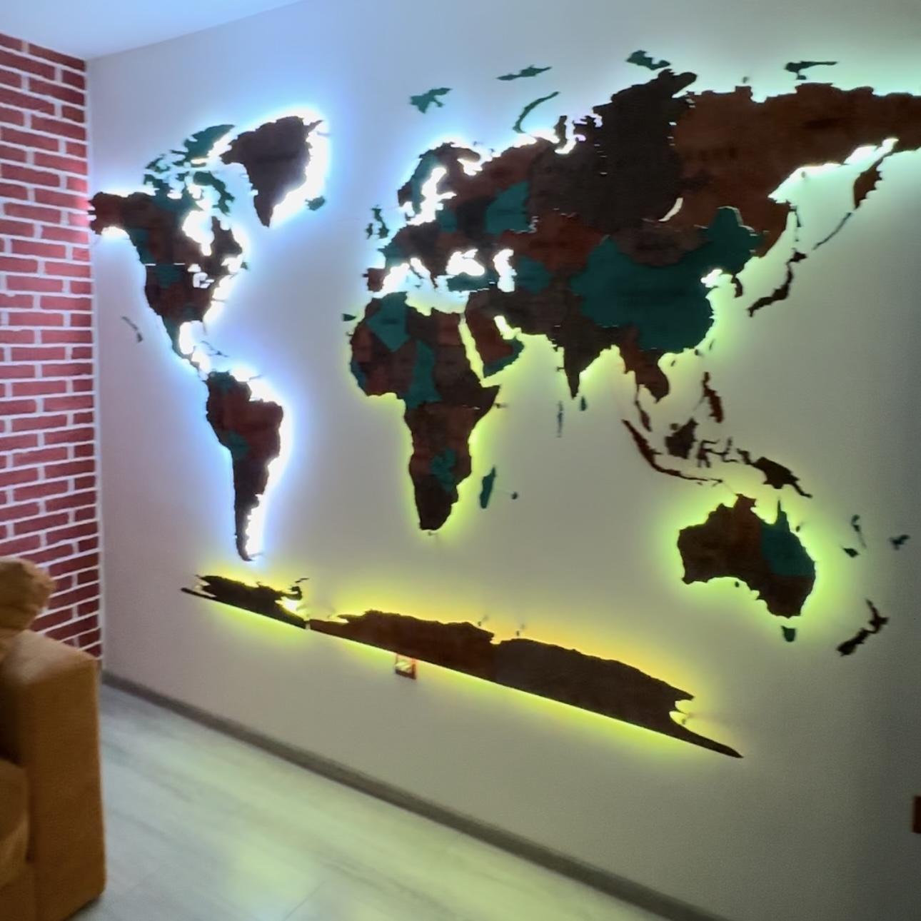 Desert Τρισδιάστατος παγκόσμιος χάρτης (ξύλο, επιλογή LED)